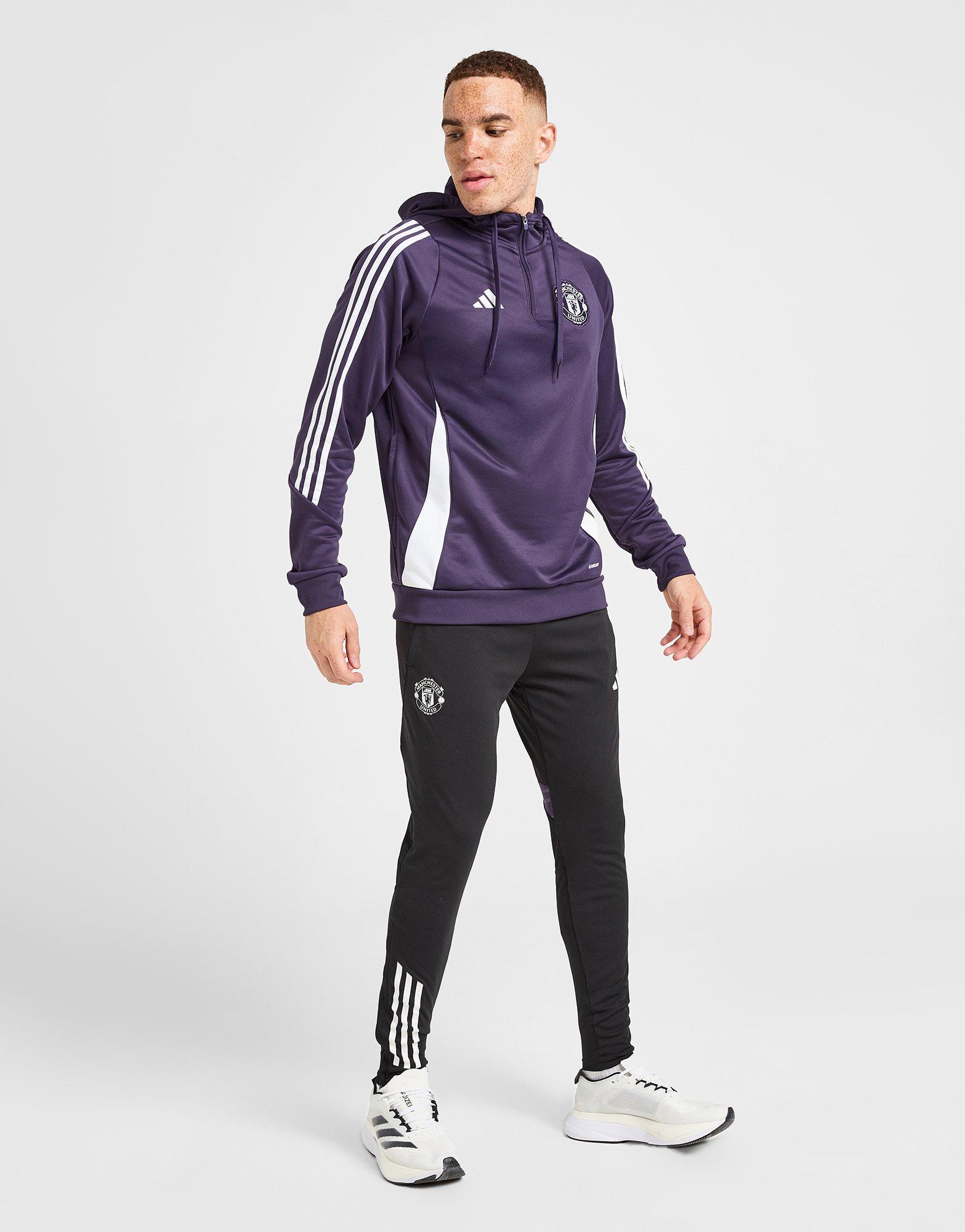 Rep your team in training sessions with these men's Manchester United FC Training Track Pants from adidas. In a Black and Aurora Plum colourway, these slim-fit pants are cut from smooth, lightweight recycled polyester for lasting comfort. They feature an elasticated waistband with a drawcord and zippered ankles to adjust the fit, while AEROREADY sweat-wicking tech keeps things dry when the game heats up. With zippered side pockets for storage, they're signed off with 3-Stripes down the sides, a Performance logo and a Manchester United crest. Machine washable. | JP3118