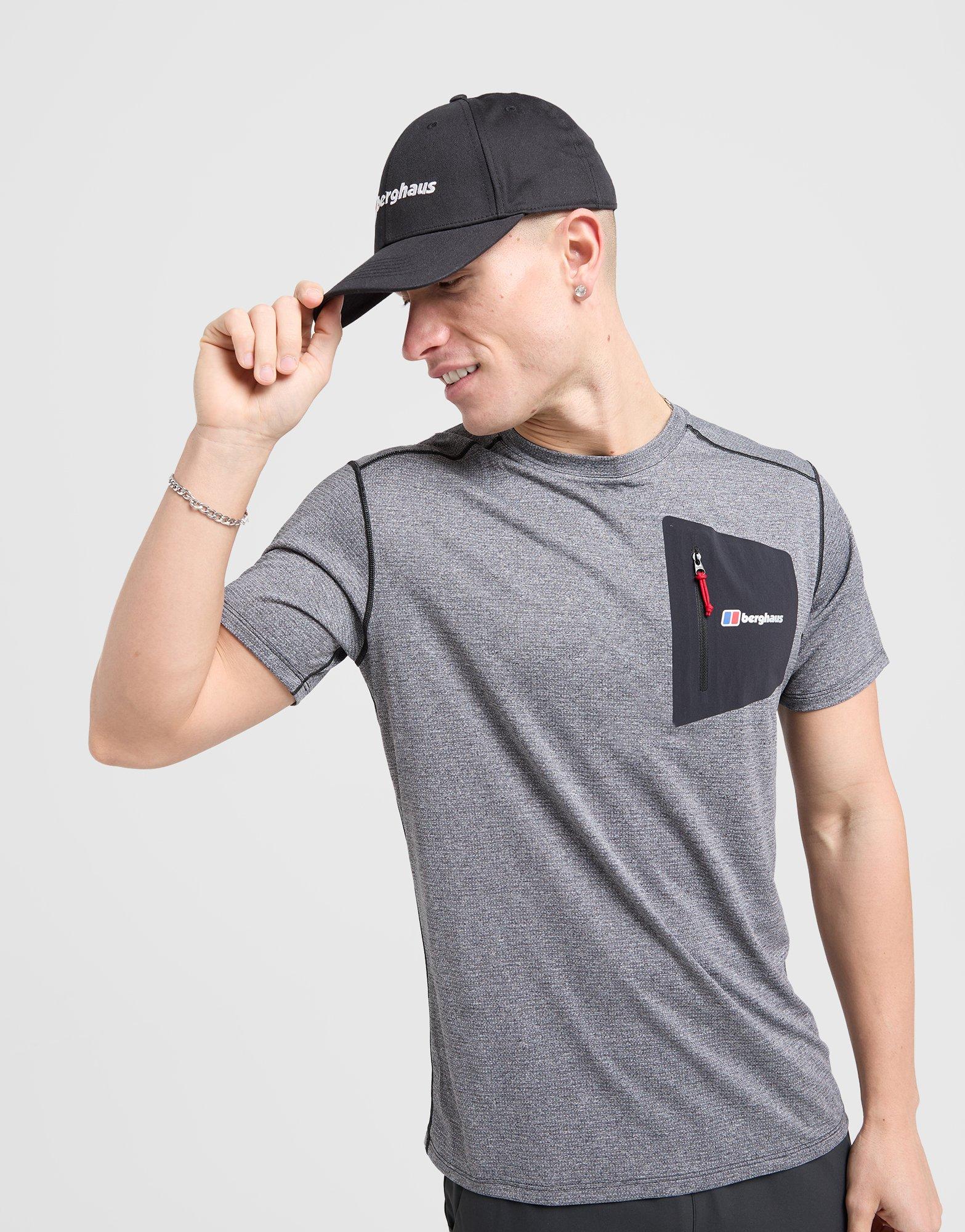 Exclusive to JD. Made for adventures, grab the essentials and go with this men's Sidley Pocket T-Shirt from Berghaus. In a Black Marl colourway exposed seams, this stretch-fit tee has a classic crew neckline and short sleeves. It's cut from smooth and lightweight polyester for cool comfort. Finished up with a woven zip pocket and Berguas branding on the chest. Machine washable. | Our model is 6'0" with a 39" chest and wears a size M.