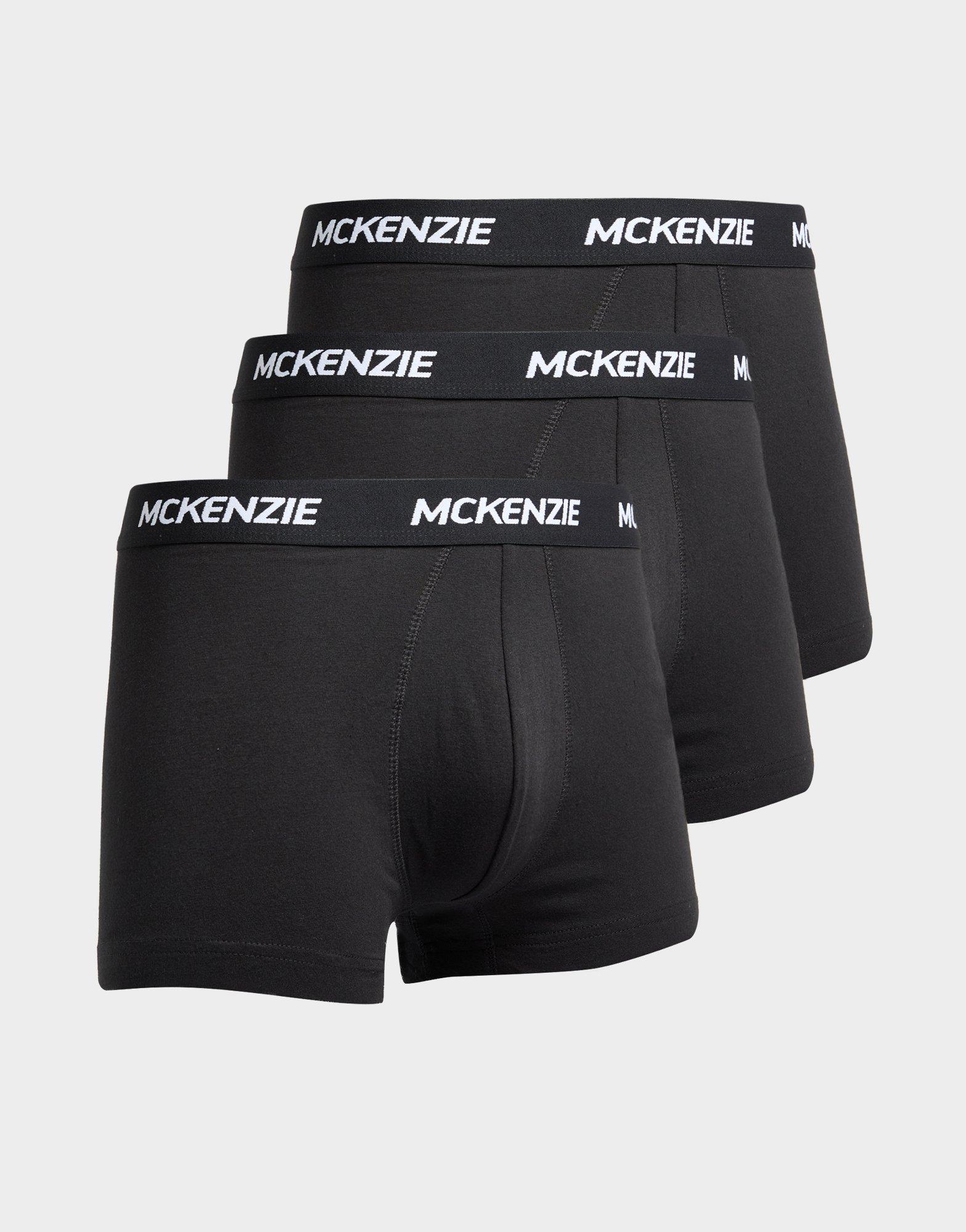 Freshen up your everyday staples with this men's 3-Pack Wyatt Boxers from McKenzie. In a Black colourway, these slim-fit boxers are made with a soft, stretchy cotton fabric for lasting comfort. They have a woven elastic waistband for a secure feel and are each signed off with repeat McKenzie branding. Machine washable. Please note: for hygiene reasons, underwear can not be returned.