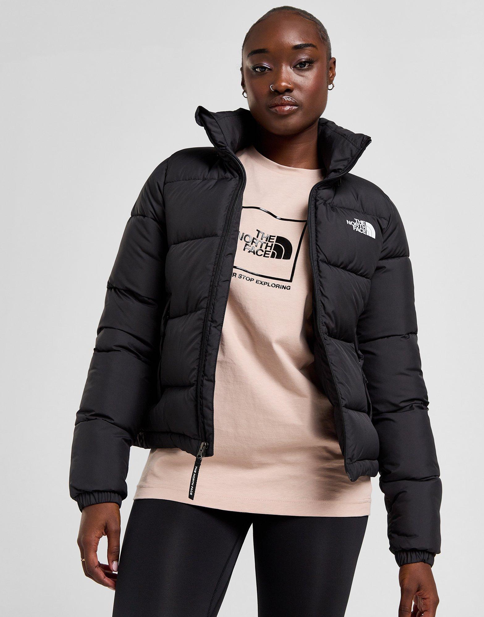Protect yourself from the elements with this women's Dome Padded Jacket from The North Face. Exclusive to JD, this jacket has a smooth but durable poly shell that's loaded with a lightweight and compressible fill. In a Black colourway, it features full zip fastening with a stand-up collar for custom coverage, a removable hood to shield you from downpours, and elastic cuffs to hold the shape. With side pockets so you can keep your staples close, it's finished with TNF branding to the chest and reverse shoulder. Machine washable. | Our model is 5'8" and wears a size small.