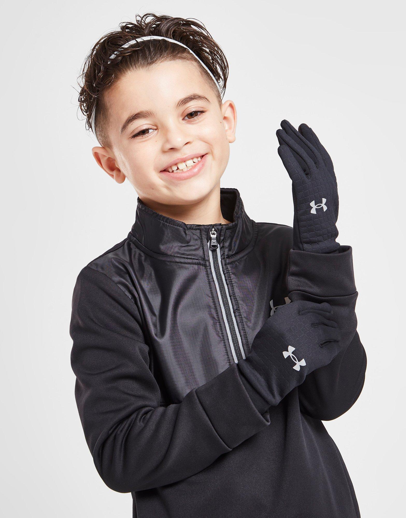 Stay warm with these juniors' Etip Gloves from Under Armour. In a Black colourway with a tonal grid print, these gloves are made with smooth, stretchy poly fabric for essential comfort. They're fitted and have tight cuffs for a secure fit, with sweat-wicking tech built in. With Tech Touch thumbs and index fingers so you can use your tech easily, they're finished up with the iconic Under Armour logo.