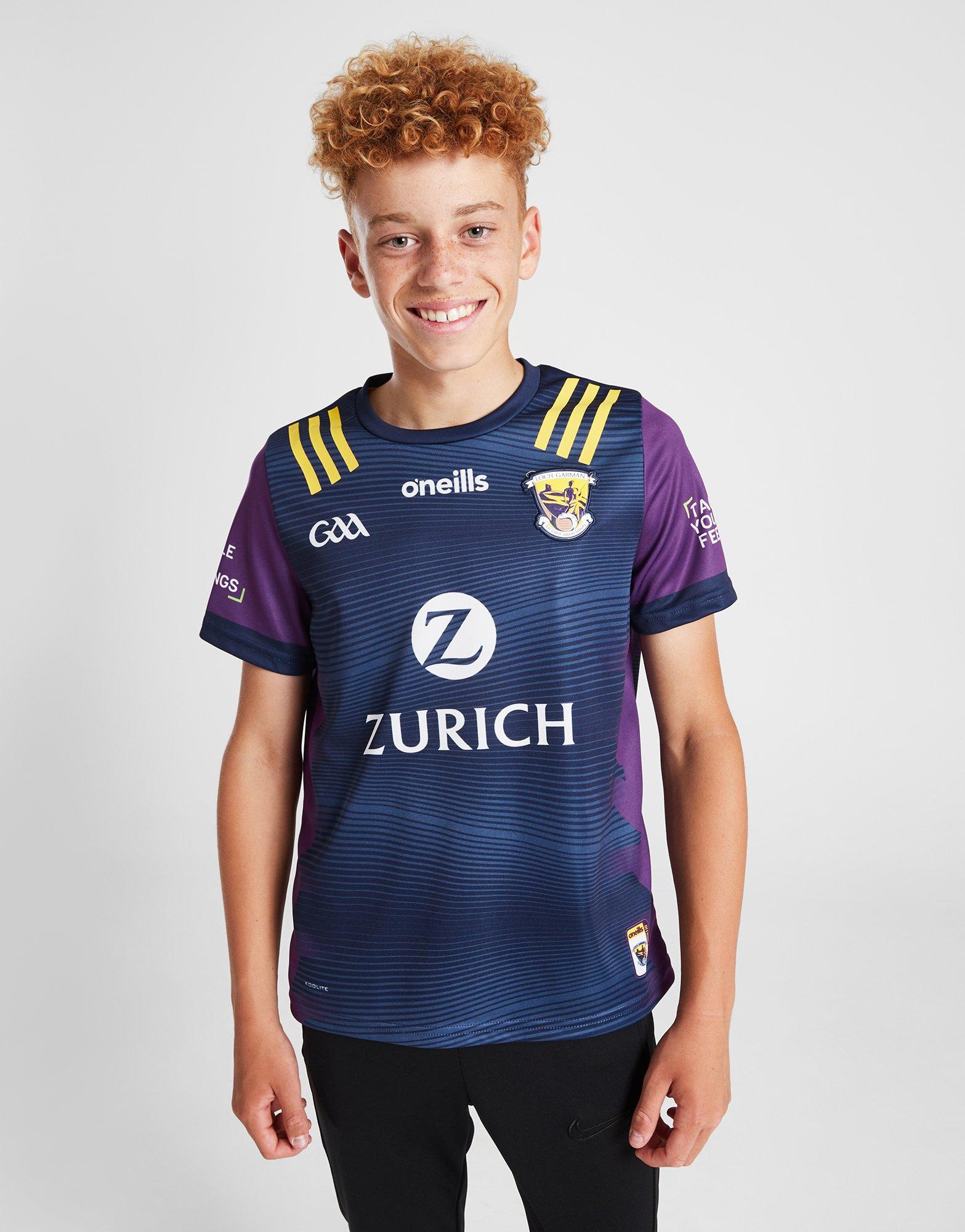 Rep your county's crest from the stands to the streets with this juniors' Wexford GAA 2023 Alternative Shirt from O'Neills. In a Navy Shadow and Wexford Purple print with Soccer Yellow stripes on the shoulders, this third shirt is made from high-performance Koolite fabric to catch and wick sweat away. It featires a ribbed crew neckline and short sleeves for a classic fit. Finished off with O'Neills branding and the signature Wexford GAA crest to the chest. Machine washable.