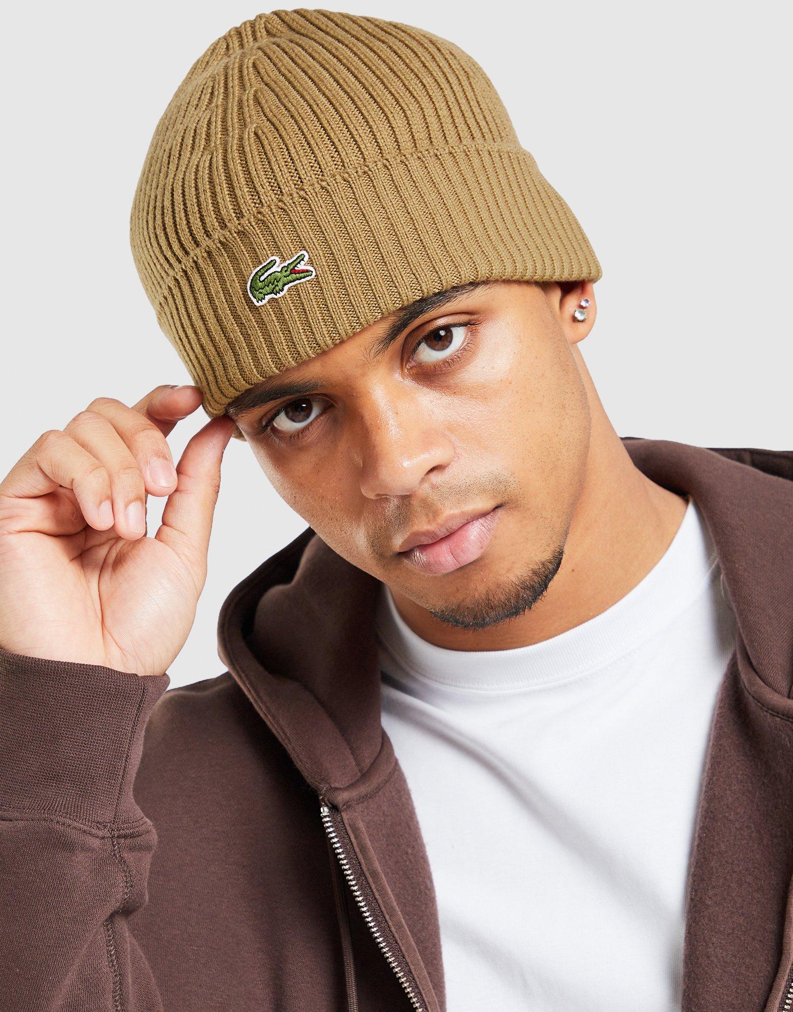 Feeling the chill? Grab this Ribbed Beanie Hat from Lacoste. Soft and stretchy knit fabric keeps you toasty. With an up-turned cuff, the classic Croc logo sits at the front. Hand wash.
