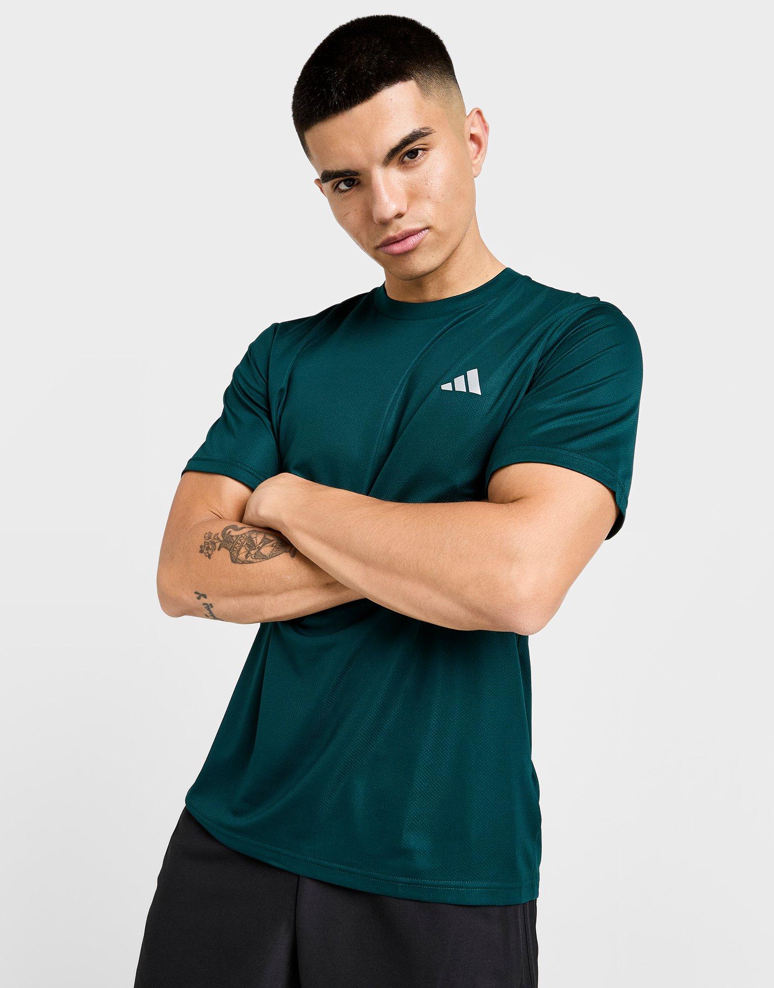 Goals? Get after em. This men's Training Essential T-Shirt from adidas is light and breathable. Recycled fabric is equipped with AEROREADY tech to remove sweat. The regular-fit feels relaxed. Landing in Aurora Ivy, it's finished with the Performance logo to the chest. Machine washable | Our model is 6'0" with a 36" chest and wears a size M. | KD4236