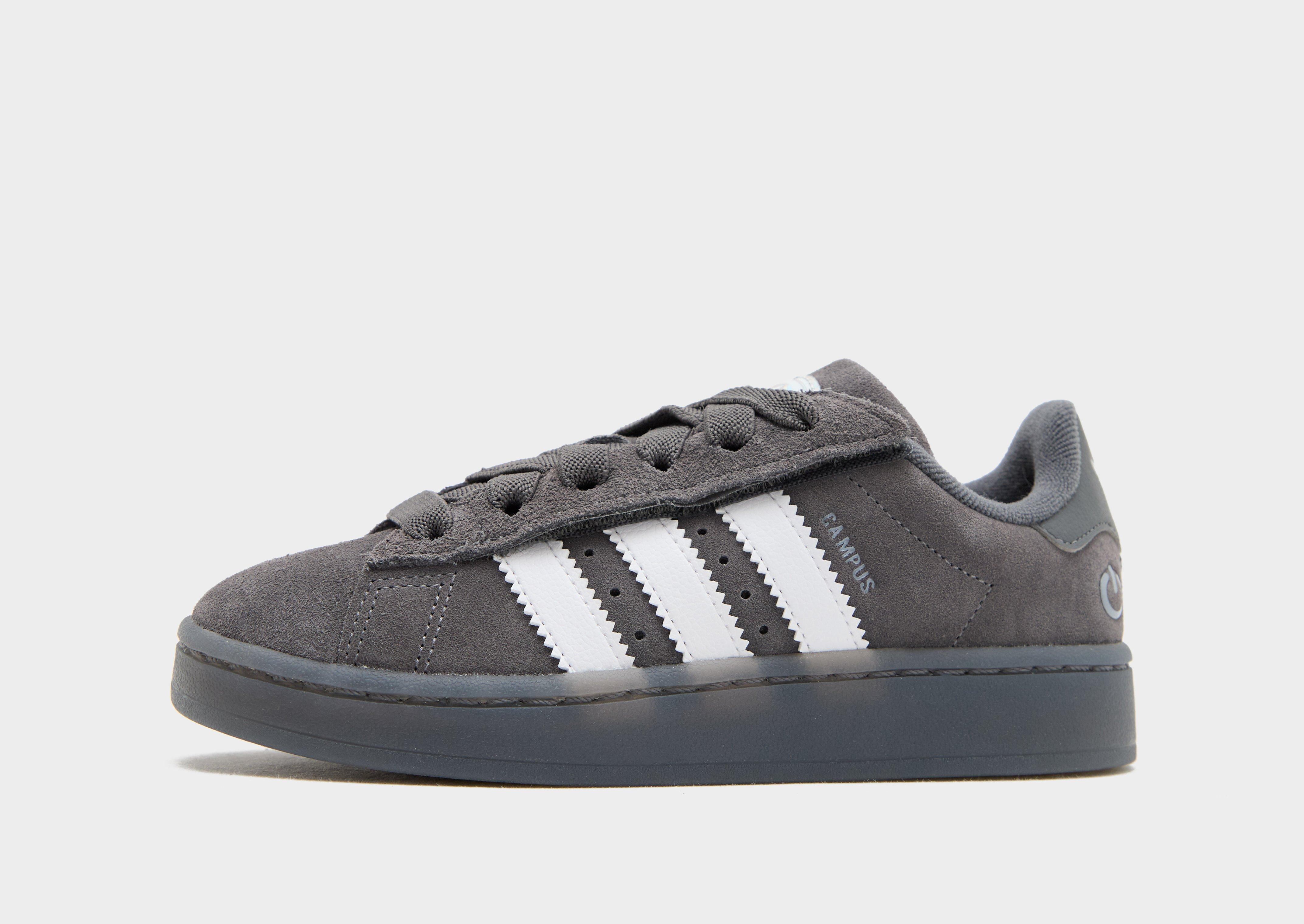 These children's Campus 00s LED Lights trainers bring big energy to an adidas Originals classic. In grey, these skate-inspired treads have a soft suede upper. Elastic laces and a hook-and-loop fastening lock in little feet. LED lights in the rubber sole light up with every step. Signature 3-Stripes branding signs off. | JS1281