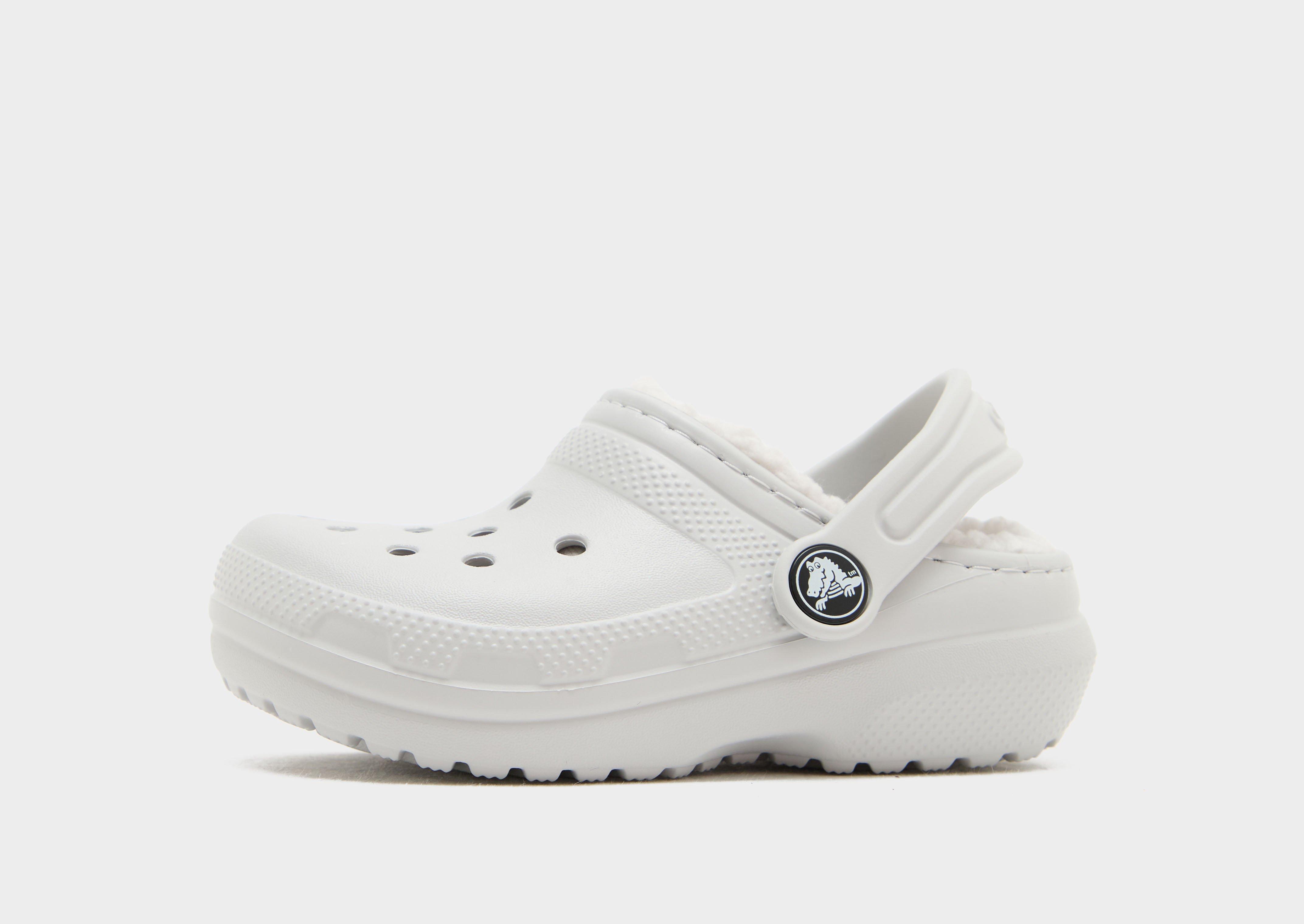 Mini feet. Big heat. Crocs has levelled up the OG with these infants' Classic Lined Clogs. The upper features the signature port holes and adjustable heel strap, but a soft fleece lining adds comfort and cosy vibes. With a textured outsole for grip, they're finished off with the Crocs badge. | Please note: Crocs fit wide. If you have narrow feet, we recommend that you size down. Crocs come with the US size embossed to the sole.