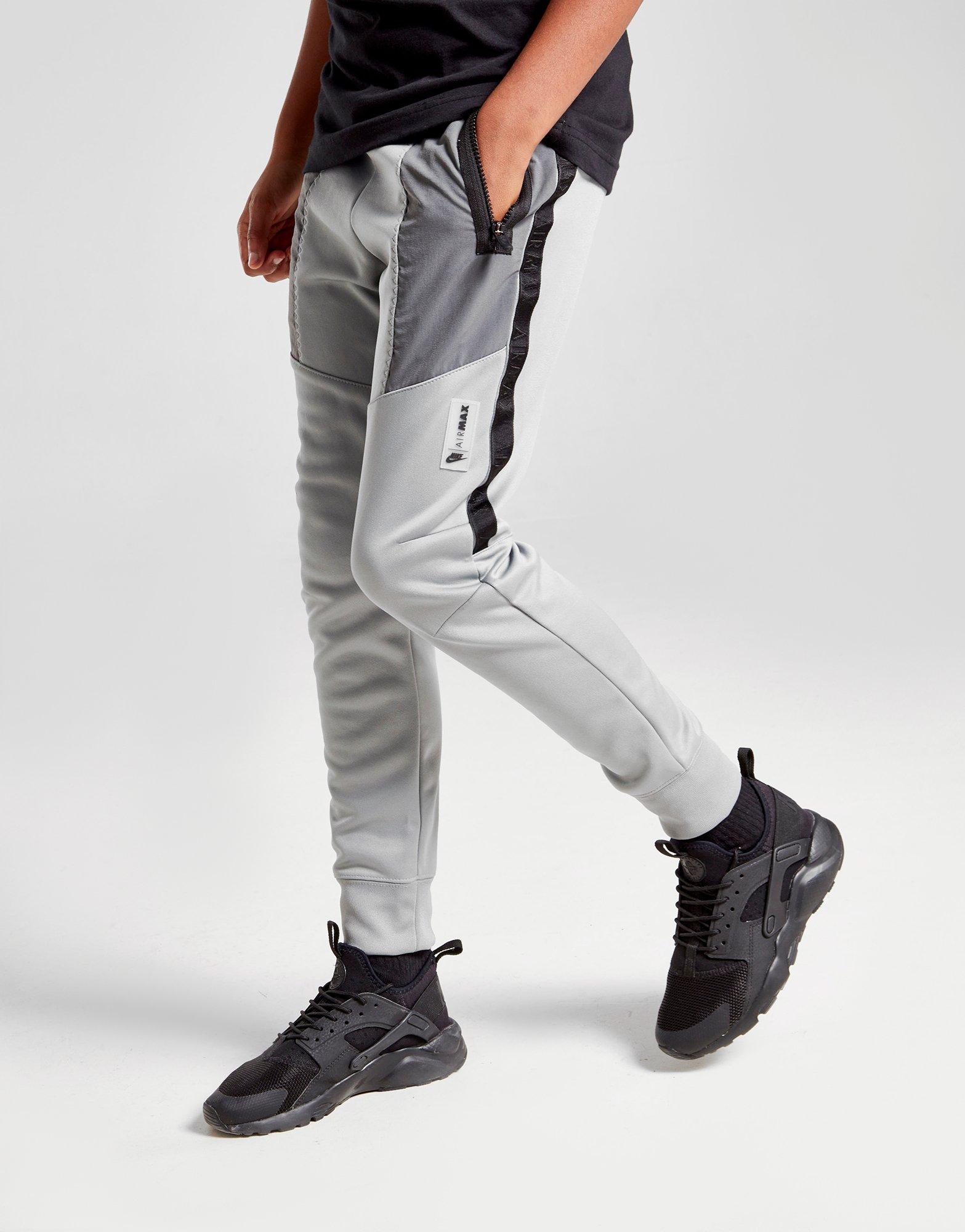 Step out in the Swoosh with these juniors' Air Max Joggers from Nike. In a grey colourway, these standard-fit joggers are made from a poly knit that feels super soft and comf'. With an alastic waistband with drawcord bringin' a snug fit, these joggers are tapered towards the ankles with ribbed trims, so you can show off your kicks. With zip pockets for essentials, they're finished up with iconic Nike branding. Machine washable. __