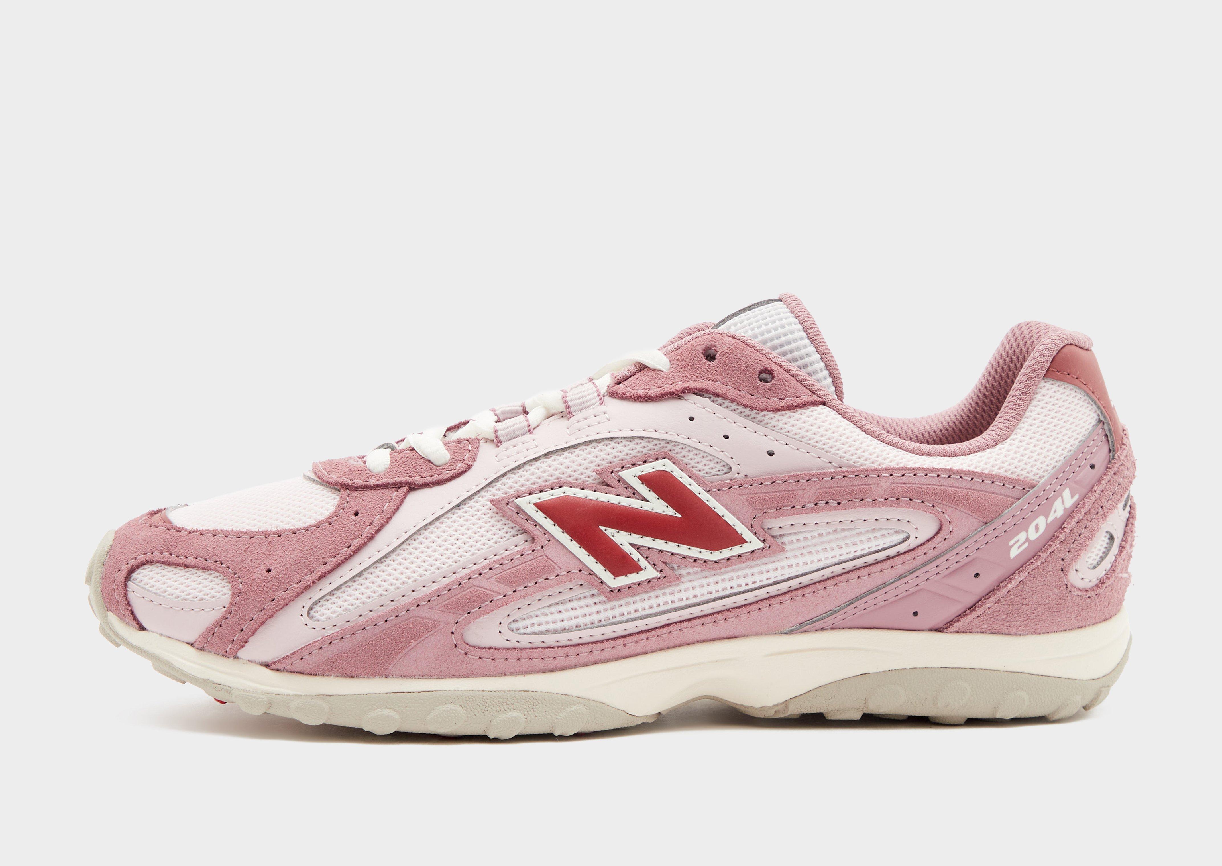Cue '70s vibes with these women's 204L sneakers from New Balance. These ultra-low trainers have a Rosewood and Pink Salt combo of mesh, synthetic and cow leather panels on the sleek upper. Under the slim midsole, a 2000s-inspired strike path keeps you gripped every time you step out. 'N' logos hit the sidewalls and the 204L branding features on the heel.