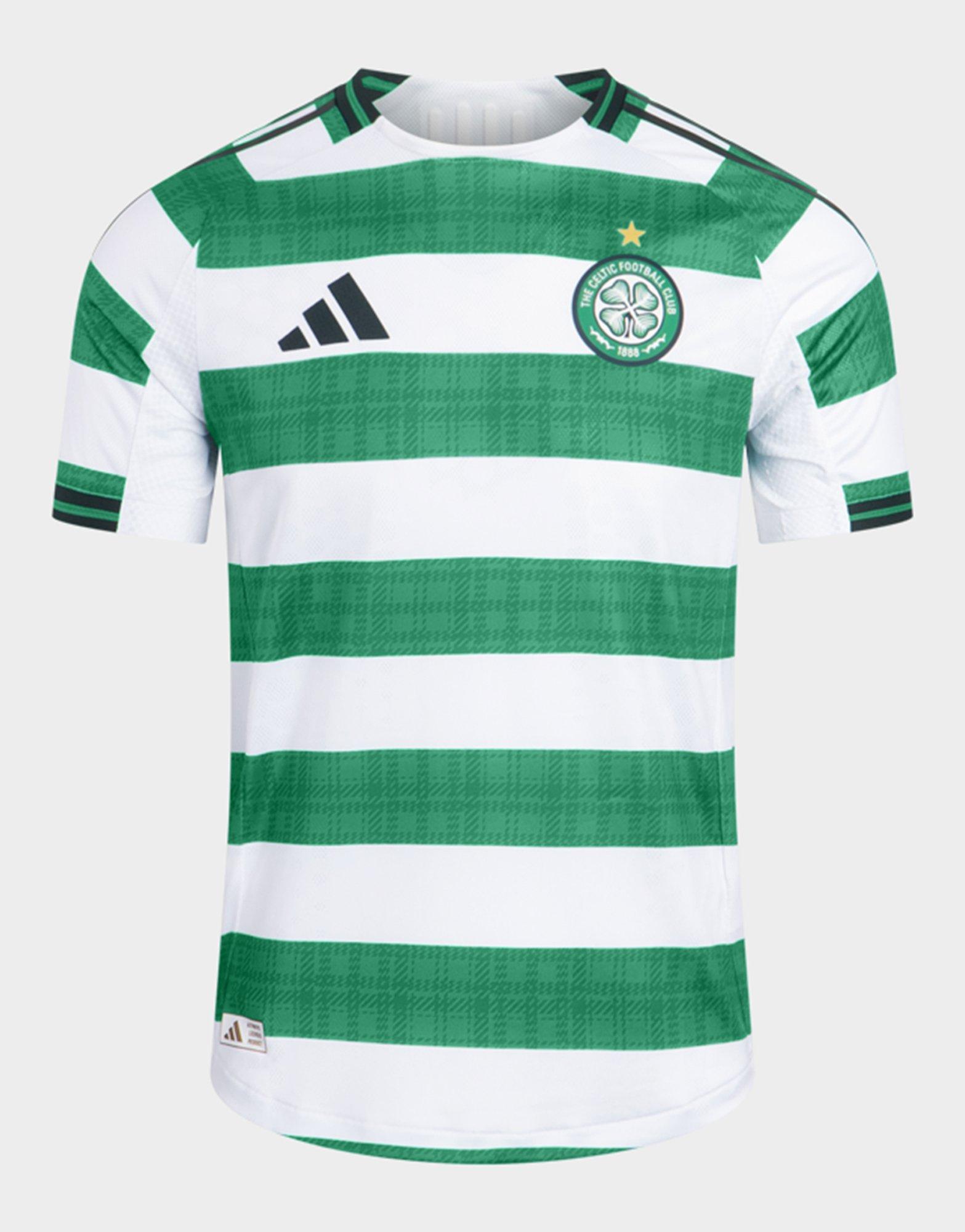 Back The Bhoys at Parkhead with this men's Celtic 2025/26 Unsponsored Home Shirt from adidas. In a White colourway, the traditional Green hoops draw inspiration from the club's history with subtle tartan detailing. It offers a slim fit and features a crew neckline and short sleeves with the 2-Stripes. Finished off with the Performance logo and classic Celtic crest on the chest. Machine washable. | JN4974