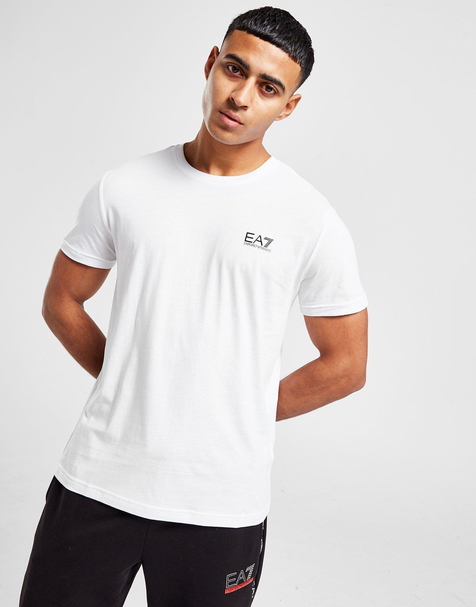For premium, everyday comfort, check out this men's Core Short Sleeve T-Shirt from EA7 Emporio Armani. In a timeless white colourway, this regular-fit tee is made from 100% cotton for maximum, off-duty comfort. It features a ribbed crew neckline and short sleeves. This tee is finished with signature EA7 silicone branding printed to the chest in black. Machine washable. | Our model is 6'2" with a 40" chest and wears a size medium.