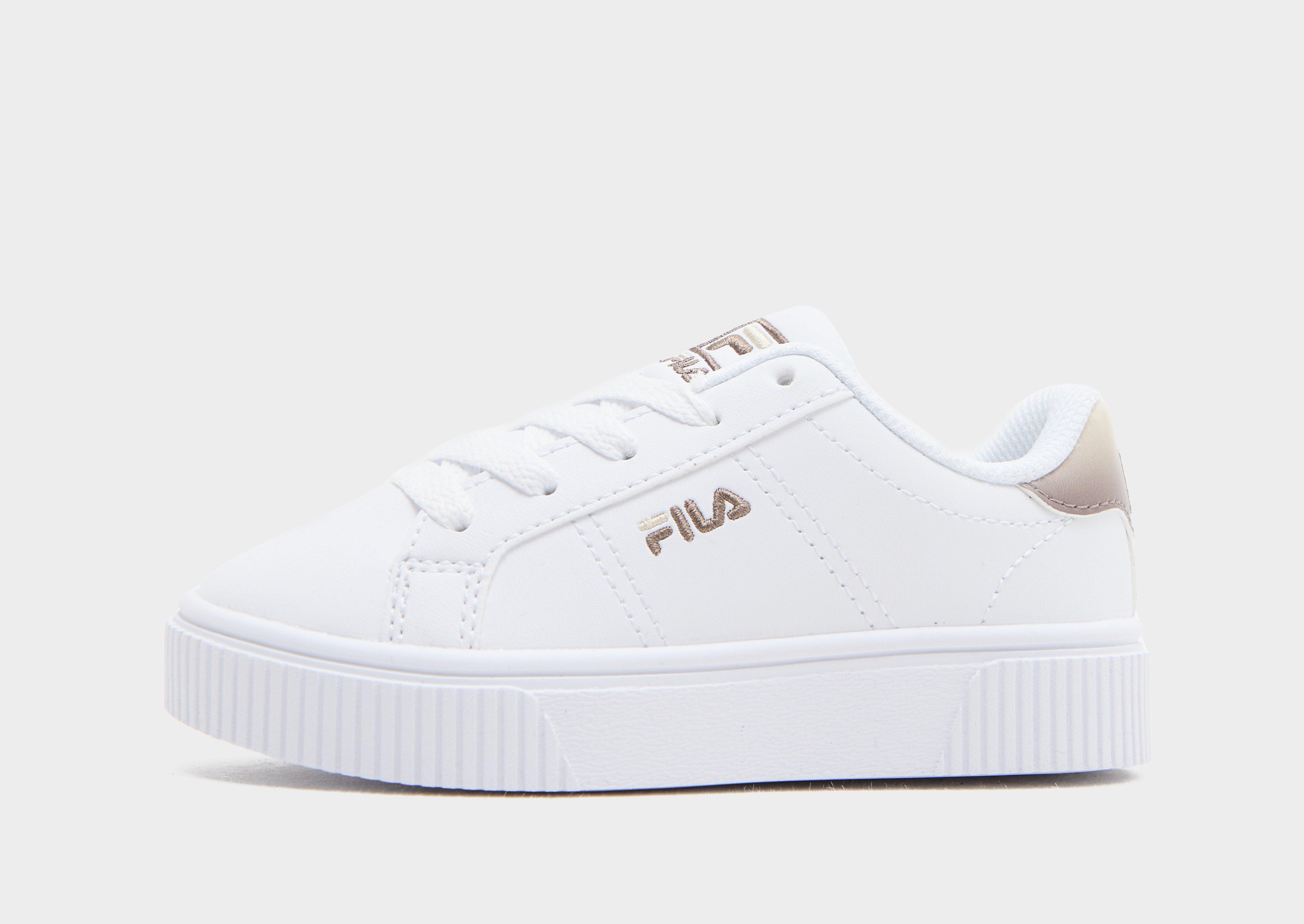 These children's Fila Panache trainers bring a fresh hit to their rotation. In white, they've got a crisp synthetic leather upper. Thick cushioning underfoot feel comfy all day long. A rubber sole delivers everyday traction. Finished up with a Walnut toned heel patch and signature Fila branding.